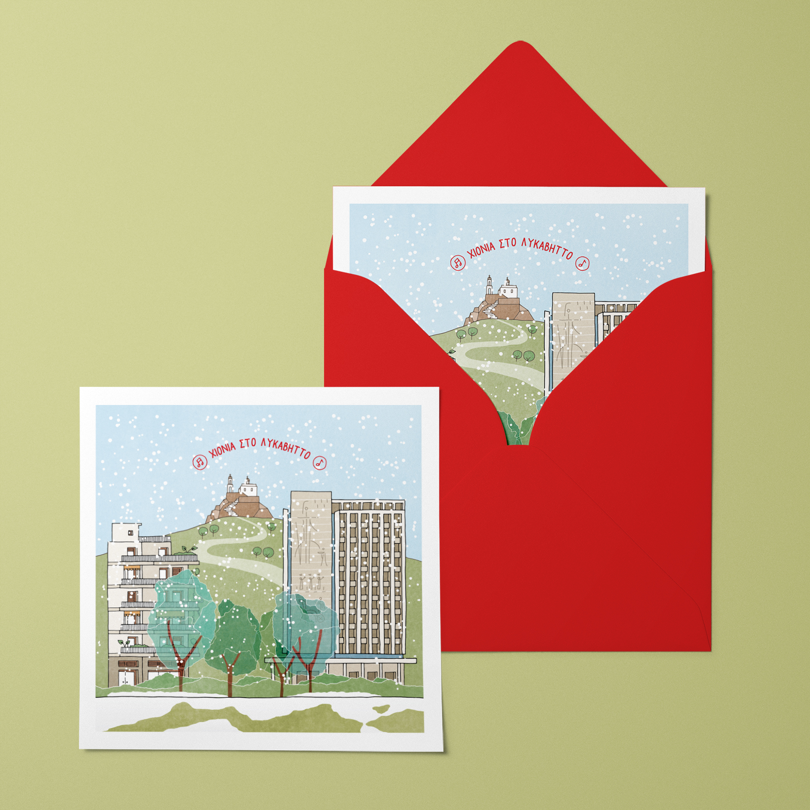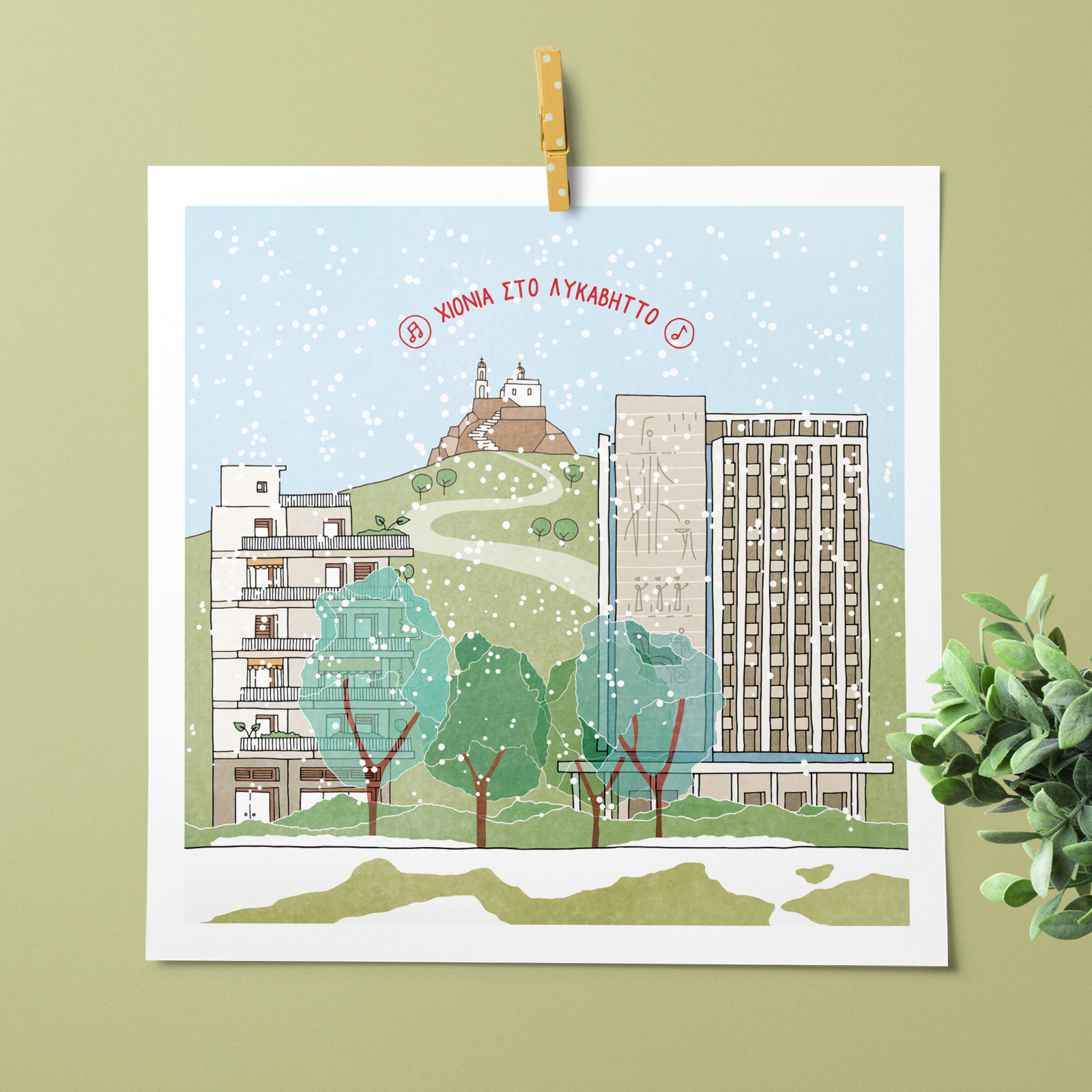 Χιόνια στο Λυκαβηττό – Ευχετήρια κάρτα